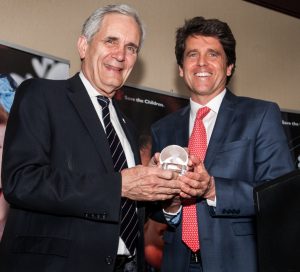 CREDIT: Office of Congressman Lloyd Doggett. Mark Kennedy Shriver (right) gives Rep. Doggett Save the Children’s 2015 “Congressional Champion for Real and Lasting Change” award.