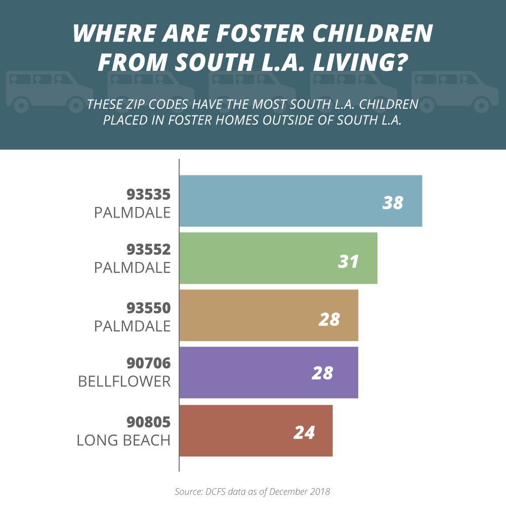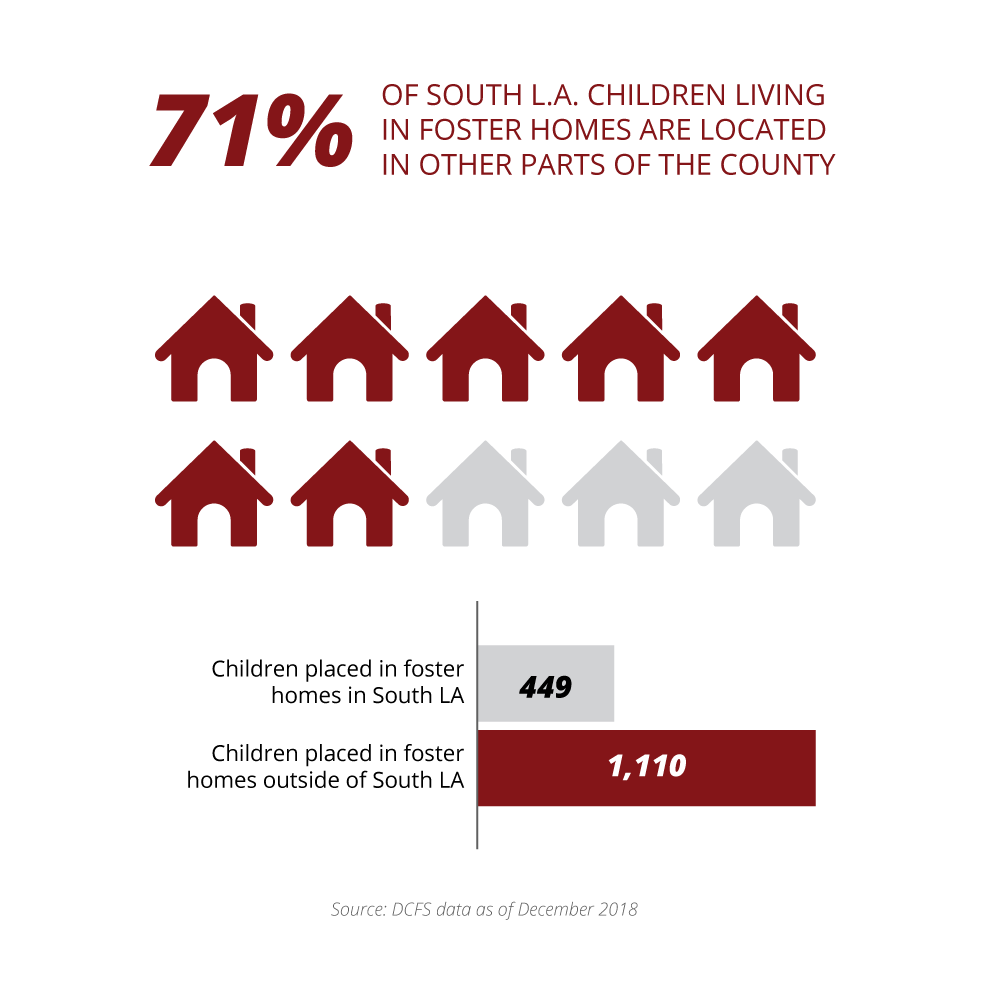 And both are from South Los Angeles neighborhoods where there are too few foster homes and beds for children removed from their home. Children from South Los Angeles — the area of the county that sends the most children into foster care — are more likely than not to be placed far from home, in a different part of the county.
