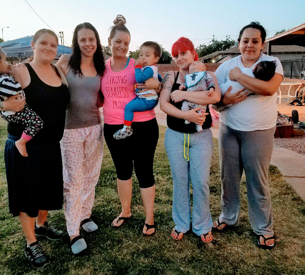 Jessica Sanchez (right) with other women from Sally’s Place.