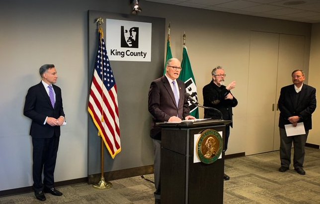 Washington Gov. Jay Inslee (D) briefs the media on the rapid outbreak of coronavirus in the state. Photo: Twitter