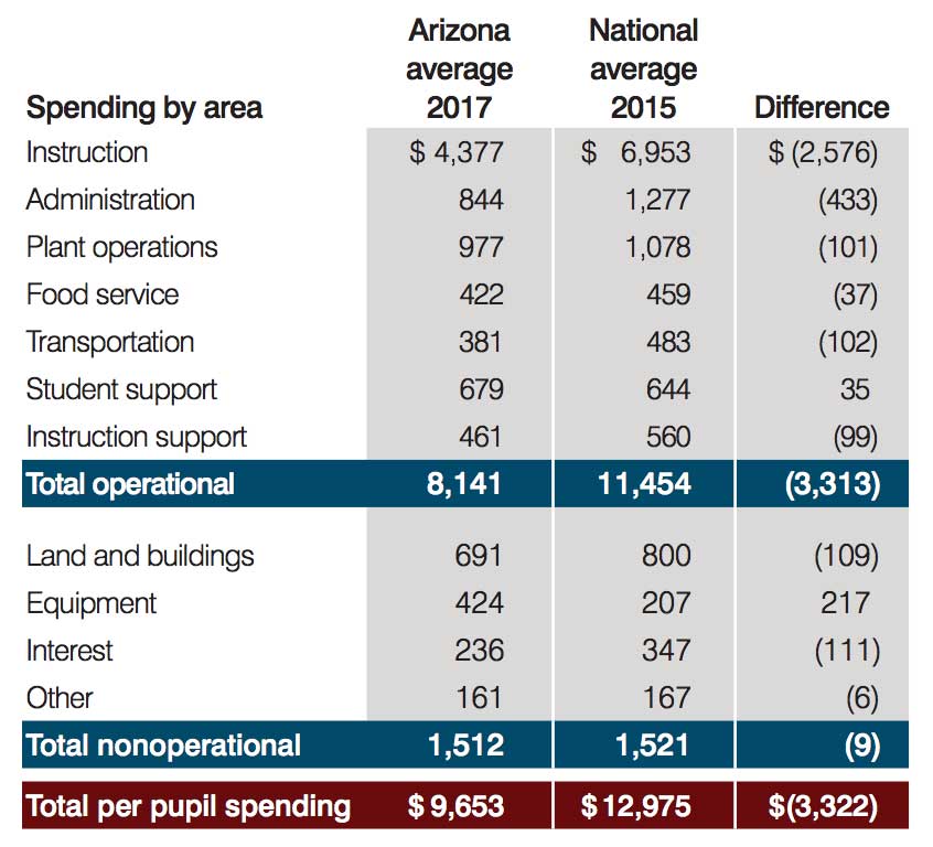 Comparison of Arizona and U.S. per pupil spending