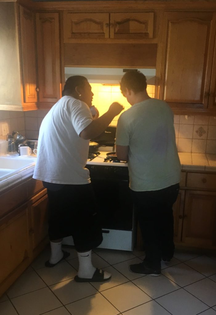 Before he entered the county’s foster care system, McCleary cooked for himself at his aunt and uncle’s home. In the small kitchen of his new transitional apartment, McCleary helps his roommate avoid another culinary mishap. His roommate’s last dinner had been scorched on the stove, setting off the smoke alarm and flooding their apartment with smoke.