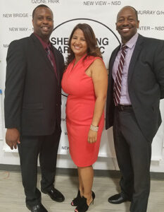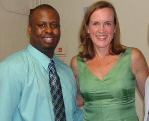 Jermaine Miller with Sheltering Arms Executive Director Elizabeth McCarthy at an event announcing the opening of Close to Home program. Photo courtesy of Sheltering Arms