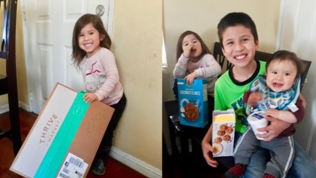 Children tear into snacks provided from The Children’s Institute’s Thrive Market. Photo courtesy of The Children’s Institute