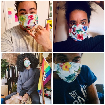 Maddox Guerilla, top right, and other young advocates from the Coalition for Homeless Youth sport masks sewn by several drag queens across the state. Photo courtesy of Jamie Powlovich.
