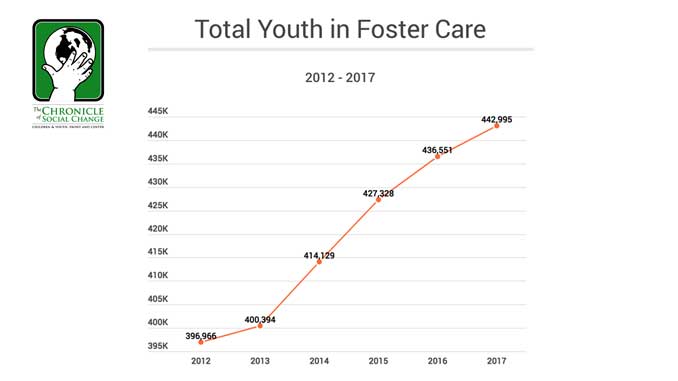 There are five states where the number of youth in care has grown by more than 50 percent since 2012. And all five of those states saw a significant increase between 2016 and 2017: