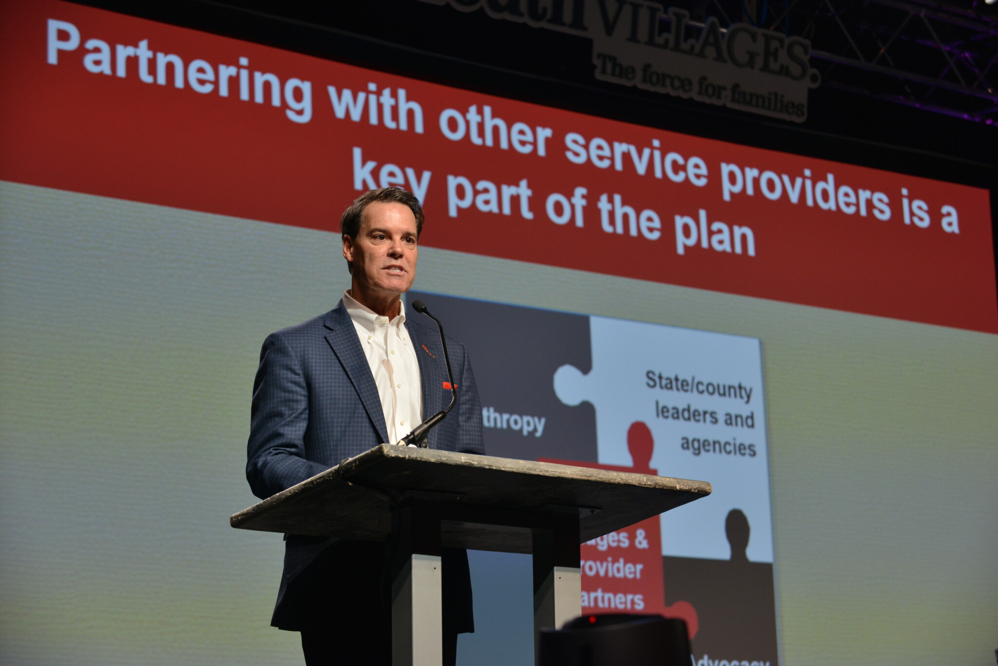 Pat Lawler presents to a conference audience about YVLifeSet, the organization’s approach to supporting youth aging out of foster care. Photo: Youth Villages