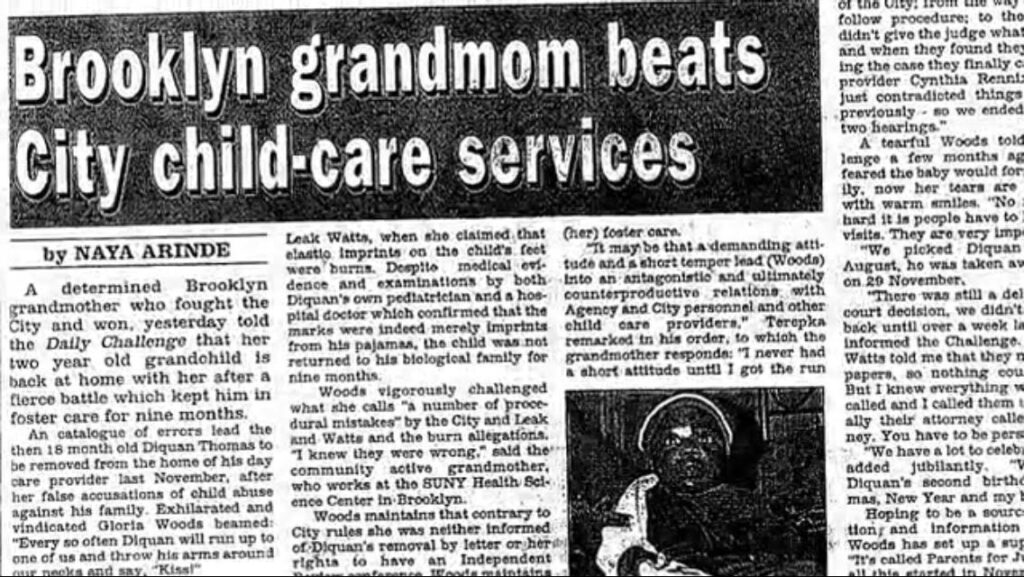 In the late 1990s, Woods launched a group called Parents United for Justice to help parents, grandparents and foster families prevent “the unjust and wrongful removal of children from their homes,” according to her LinkedIn profile. She took her message to the airwaves through Brooklyn’s public access cable channel. For 15 years, Woods hosted the monthly public affairs show “Get Connected,” discussing caregiver issues with advocates and lawmakers, alerting parents of their rights, and offering help to affected families.