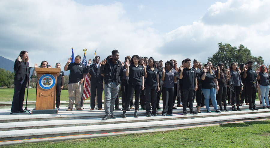Last week, 82 foster youth in Los Angeles County were sworn in as AmeriCorps members. They will serve as peer advocates to other transition-age foster youth. Photo: Jeremiah McWright