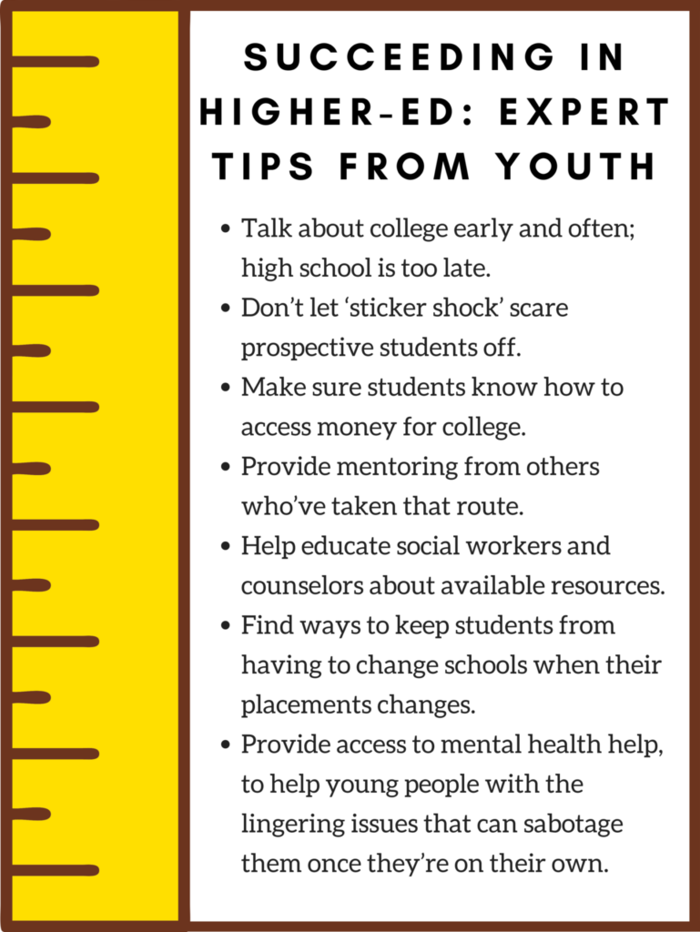 But fewer than half of former foster youths who want to go to college take full advantage of those benefits, or even know they exist.