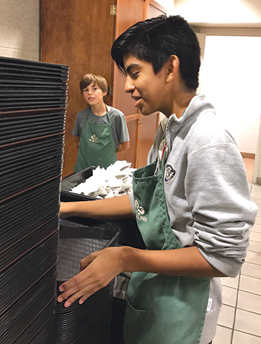 Kyler and another volunteer preparing to serve meals to the homeless community. Photo courtesy of Kyler Stockstill