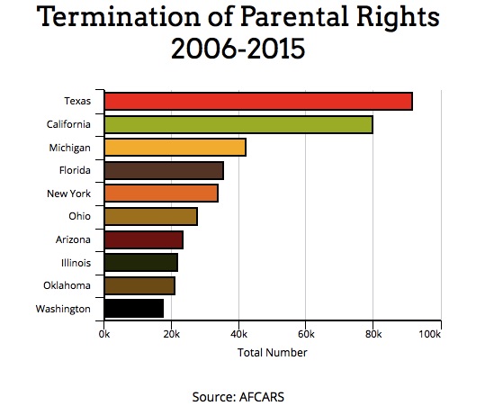 States with the highest number of Terminations of Parental Rights, 2006-2015