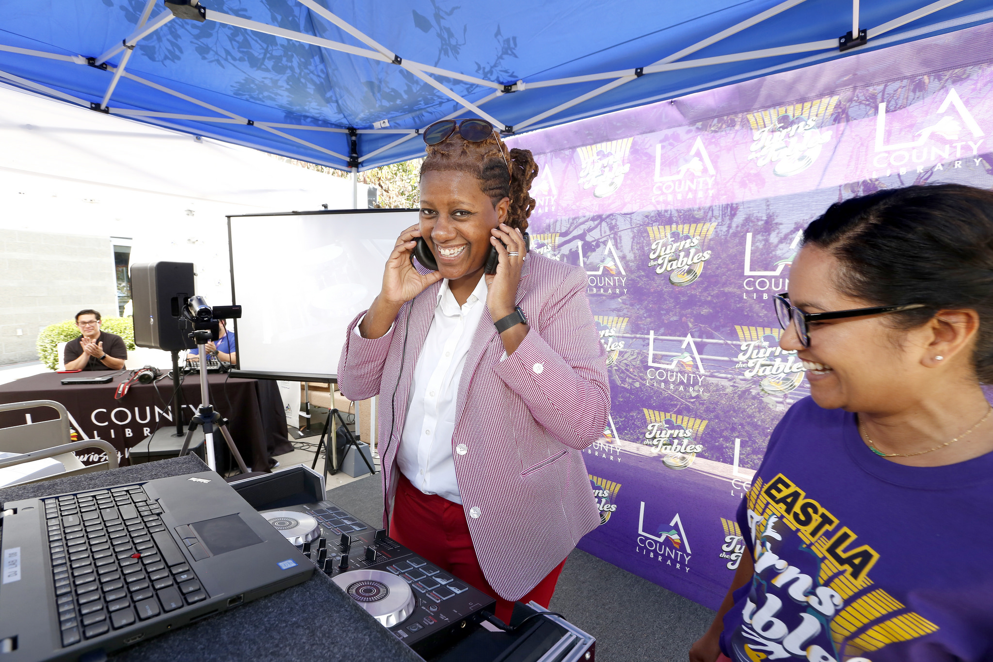 Los Angeles County’s new library director Skye Patrick mixes beats at an event for the library’s DJ training program, Turn the Tables. Photo courtesy of LA County