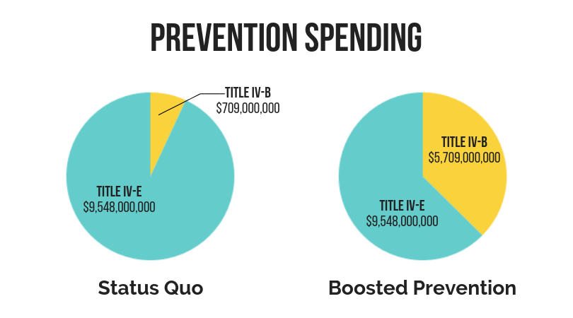 The current budget anticipates spending $8.6 billion for the IV-E entitlement, which is tied to children who have already entered foster care or have been adopted. Less than 10 percent of that, $709 million, is spent on Title IV-B, of which an even smaller portion is spent on true prevention. While Family First, which goes into effect in October of 2019, will reconfigure some of this spending, the federal investment in child welfare will still be very lopsided in favor of intervention as opposed to prevention.