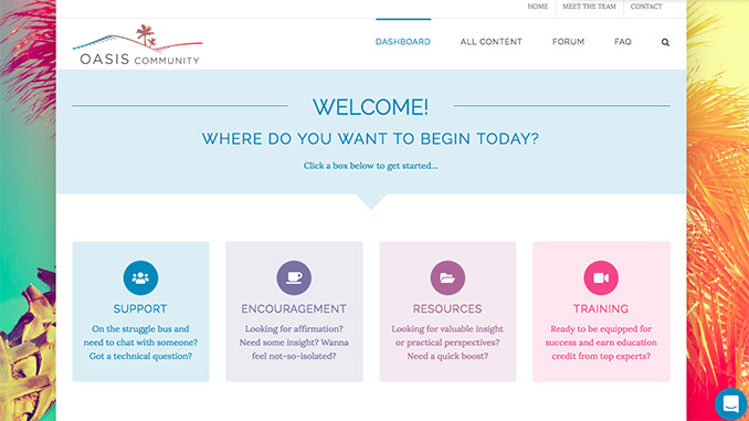 The basic idea for the couple’s Oasis Community was formulated in 2016 and the following spring enrollment into the exclusive resource, training and support-driven community was opened. Just closing its most recent enrollment period last month, today there are already roughly 600 Oasis members paying the $16 monthly subscription fee.