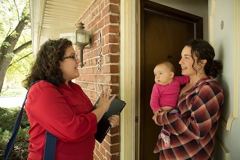 An Iowa State researcher interviews an Iowa home visiting services client. Photo by Ryan Riley