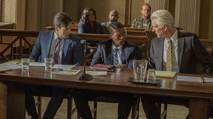 A courtroom scene from the new film “Foster Boy.”