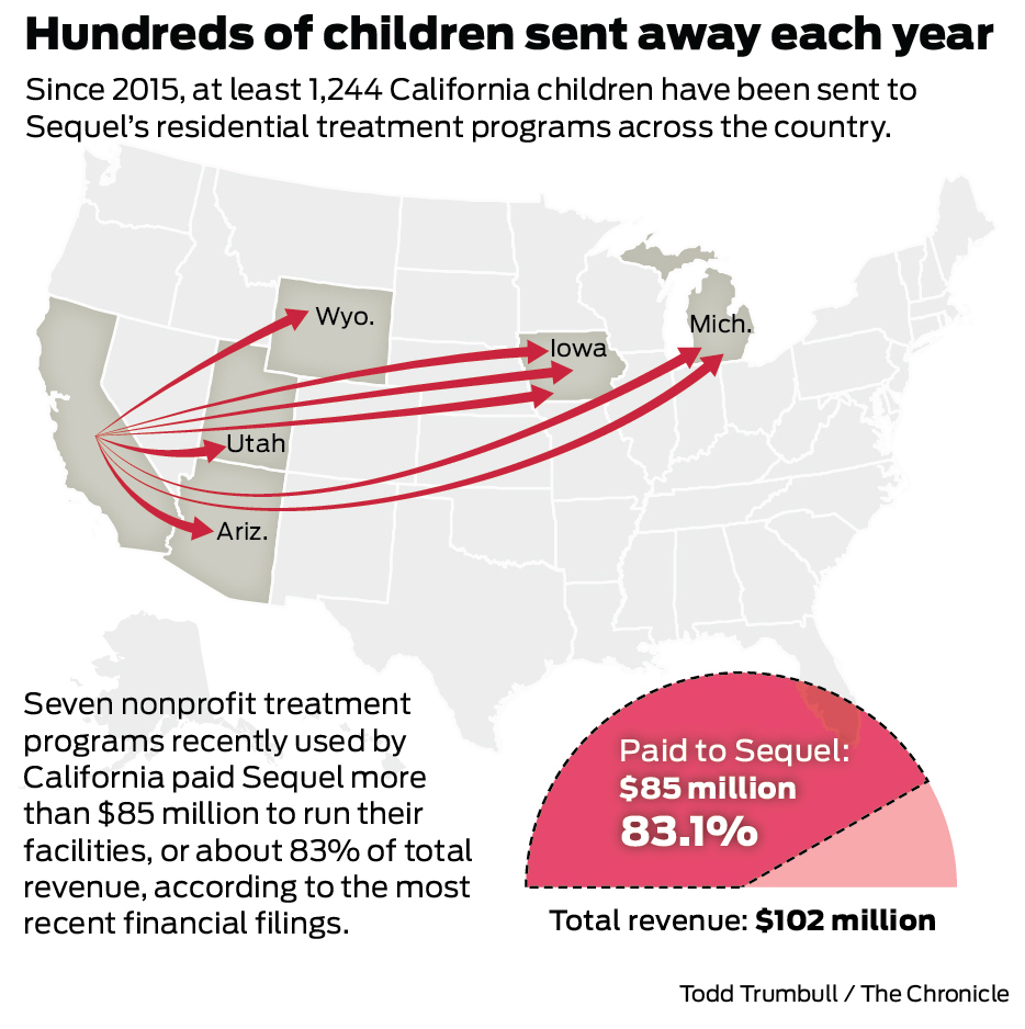 Yet California continued to send children to Sequel-run programs, shipping more than 1,240 young people to facilities in Michigan, Iowa, Wyoming, Arizona and Utah since 2015 –– roughly half of all foster youth sent out-of-state.