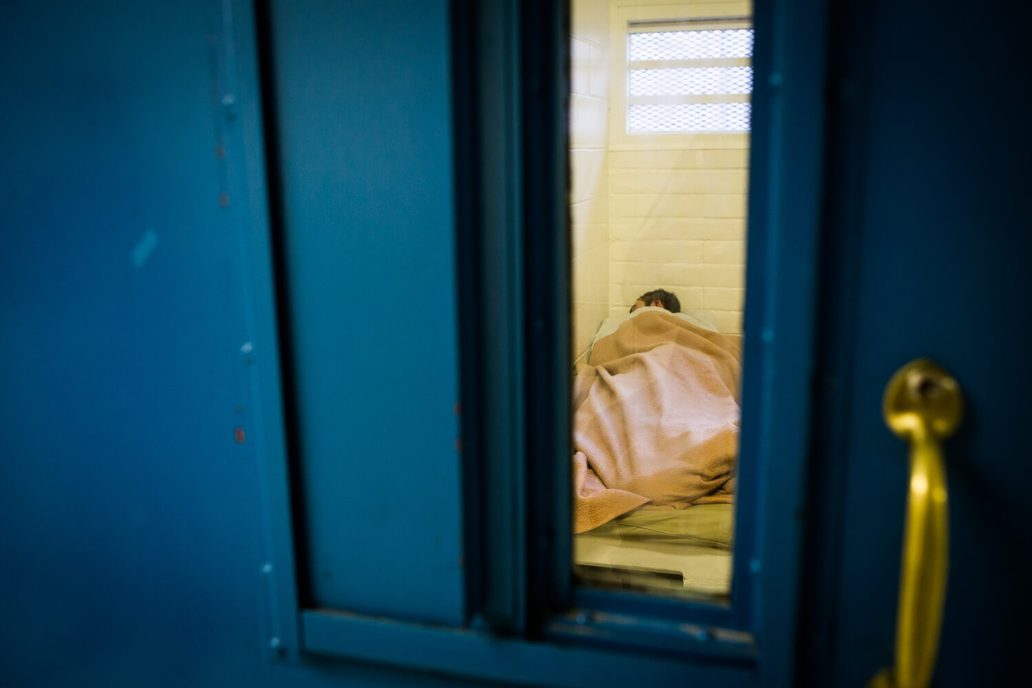 An inmate sleeps in their cell at the El Dorado County Juvenile Hall in Placerville, California, November 6, 2014. Photo by Max Whittaker.