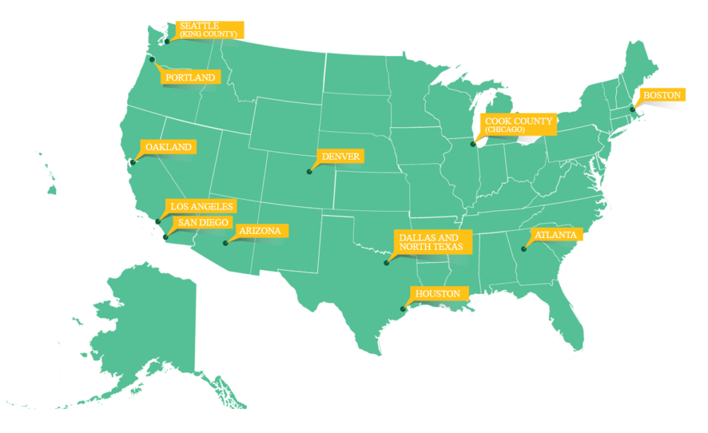 A map of Demand Abolition’s CEASE Network (Cities Empowered Against Sexual Exploitation). Photo: Demand Abolition