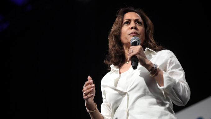 Kamala Harris speaking in Des Moines, Iowa. Photo: Gage Skidmore