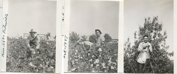 Smith holds onto photos of her uncle, James Cantrell, picking cotton and pears in the San Joaquin Valley in 1949, one year after the federal Bureau of Indian Affairs officially launched its Relocation Program. She calls the photos “propaganda.”