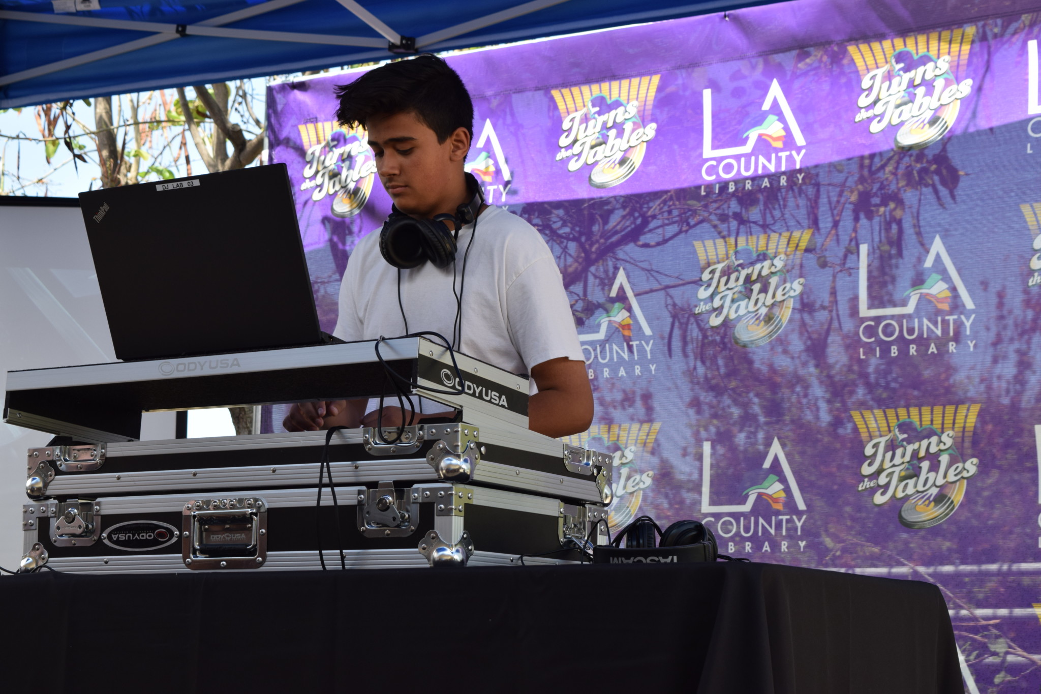 As public schools struggle to provide art and music classes, Patrick sees the library as being in a position to fill that gap and make sure L.A.’s teens can still access creative education. They’re building a stock of DJ turntables — they have 20 so far — to be placed in libraries across the county so people can plug in headphones and practice their skills. Patrick said they’ll also buy some instruments, maybe keyboards or guitars, and offer free music classes soon.