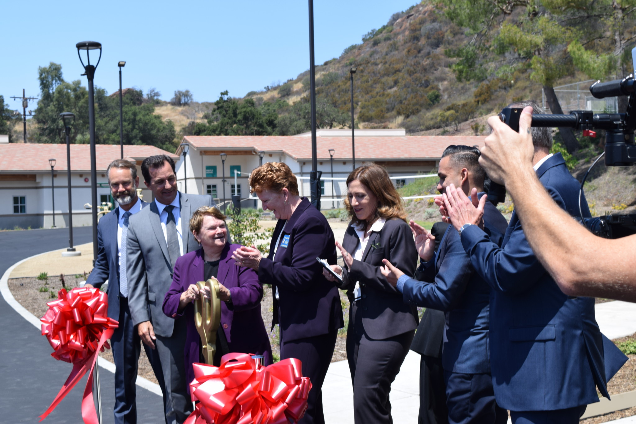 LA County Department of Mental Health Director Jonathan Sherin, Department of Public Works Director Mark Pestrella, Supervisor Sheila Kuehl, Probation Chief Terri McDonald and LACOE Superintendent Debra Duardo at the ribbon cutting ceremony for Camp Kilpatrick. Photo: Jeremy Loudenback