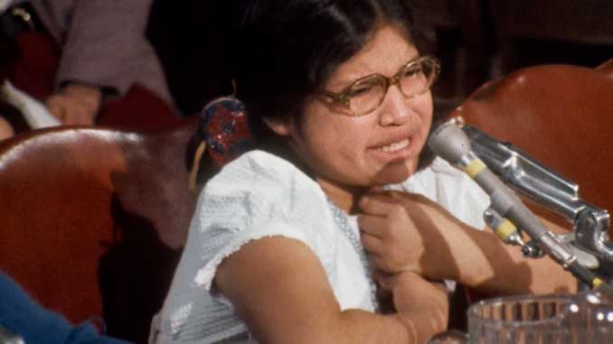 Anna Townsend, 9, of Fallon, Nevada, testifying on April 8, 1974 at the Subcommittee on Indian Affairs of the U.S. Senate. Photo courtesy: NBCUniversal