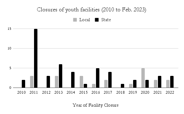 Why have so many facilities closed? In most cases, the high cost of incarceration became unsustainable, especially as youth incarceration rates fell. In some places, facility staff were found to have perpetrated serious abuse against youth. In others, facilities were closed for maintenance or operational failures. And increasingly, policymakers recognized what the research has long shown: Youth incarceration fails to reduce harm and often makes outcomes worse — particularly for youth of color, who are disproportionately impacted by the system.