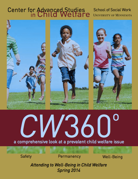 The issue is comprised of three sections, overview, practice, and perspectives, and includes a literature review of well-being issues as they relate to child welfare. The work in CW360° is intended to improve research and practice in work settings and to create opportunities to utilize a new knowledge base.