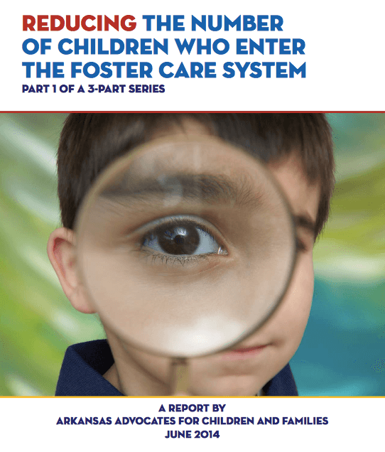 A report from the Arkansas Advocates for Children and Families tackles ways to decrease the number of children who enter the Arkansas child welfare system. The first part of a planned three-part series, “Reducing The Number Of Children Who Enter The Arkansas Foster Care System” was written in response to the first goal that Arkansas Division of Children and Families Services (DCFS) submitted in order to receive a demonstration waiver from the federal government. (The remaining two goals will be covered in future briefs.)