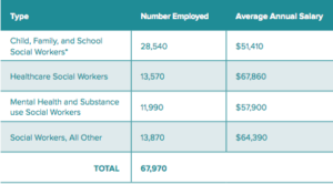A related concern addressed in the report is a shrinking hiring pool. The number of social workers statewide is projected to grow, as is the demand for child welfare social workers. But this group is the lowest paid among four major types of social workers. Experts predict more and more of those young professionals are expected to opt for social work jobs in higher-paying healthcare and substance abuse fields.