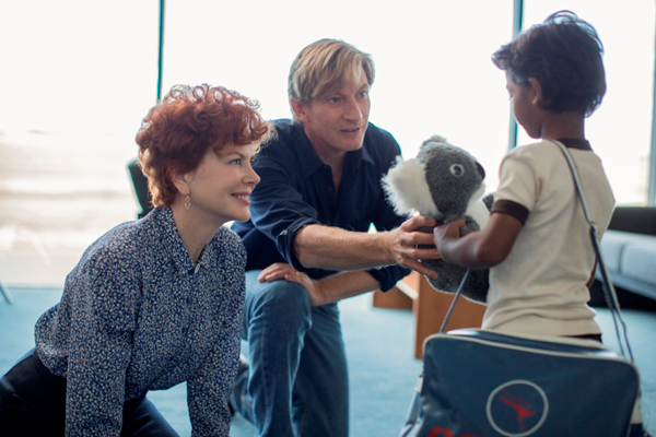 David Wenham and Nicole Kidman as John and Sue Brierley, Saroo’s adoptive parents. Young Saroo was played by Sunny Pawar. Credit: Lion