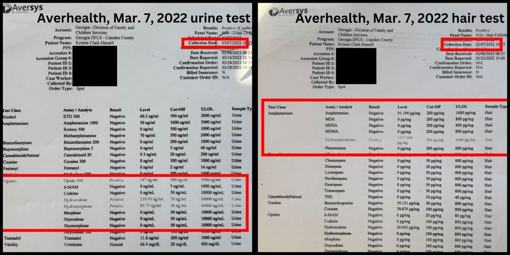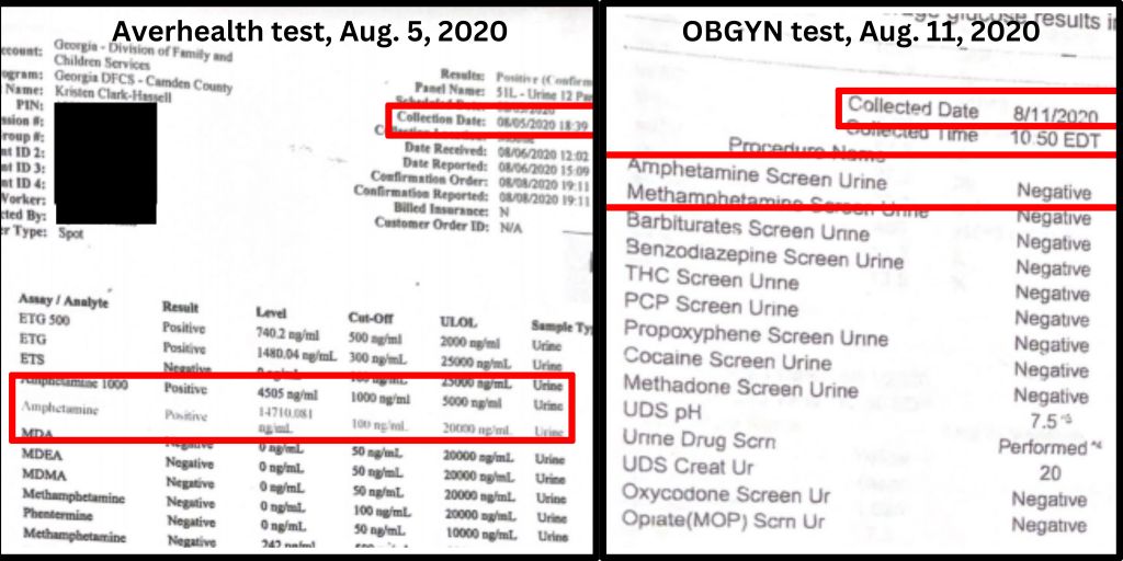 In September 2020, she took a urine test, this time through Camden County Drug Court. The result was negative, according to the testing record. She thought the OBGYN result, part of standard medical care, and the drug court result, which she sought out, would prove to DFCS she did not use drugs.