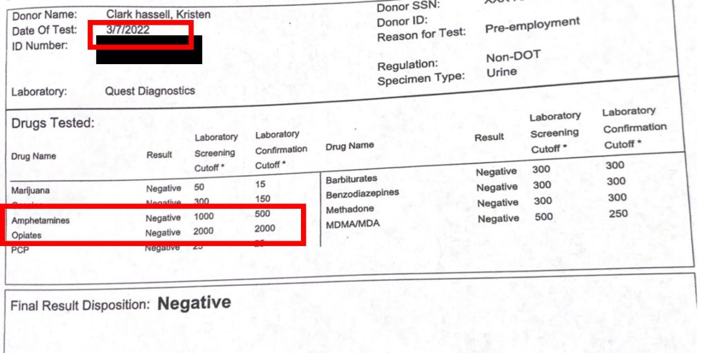 Six days after the first collection from Averhealth, Clark-Hassell received a urine screen during a visit to her OBGYN, and the test showed as negative for these illegal substances, according to documents reviewed by The Current.