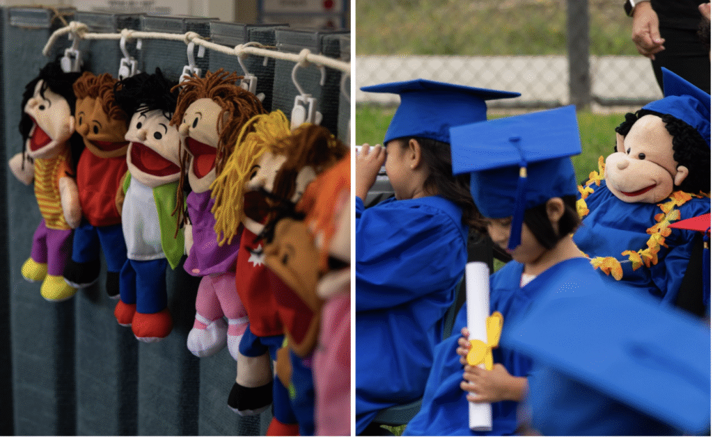 Wally, a puppet with curly black hair, is part of the program. He has a special place in the school’s annual graduation ceremonies. Every year, a member of the school staff holds the puppet so it can “walk” with the kids.