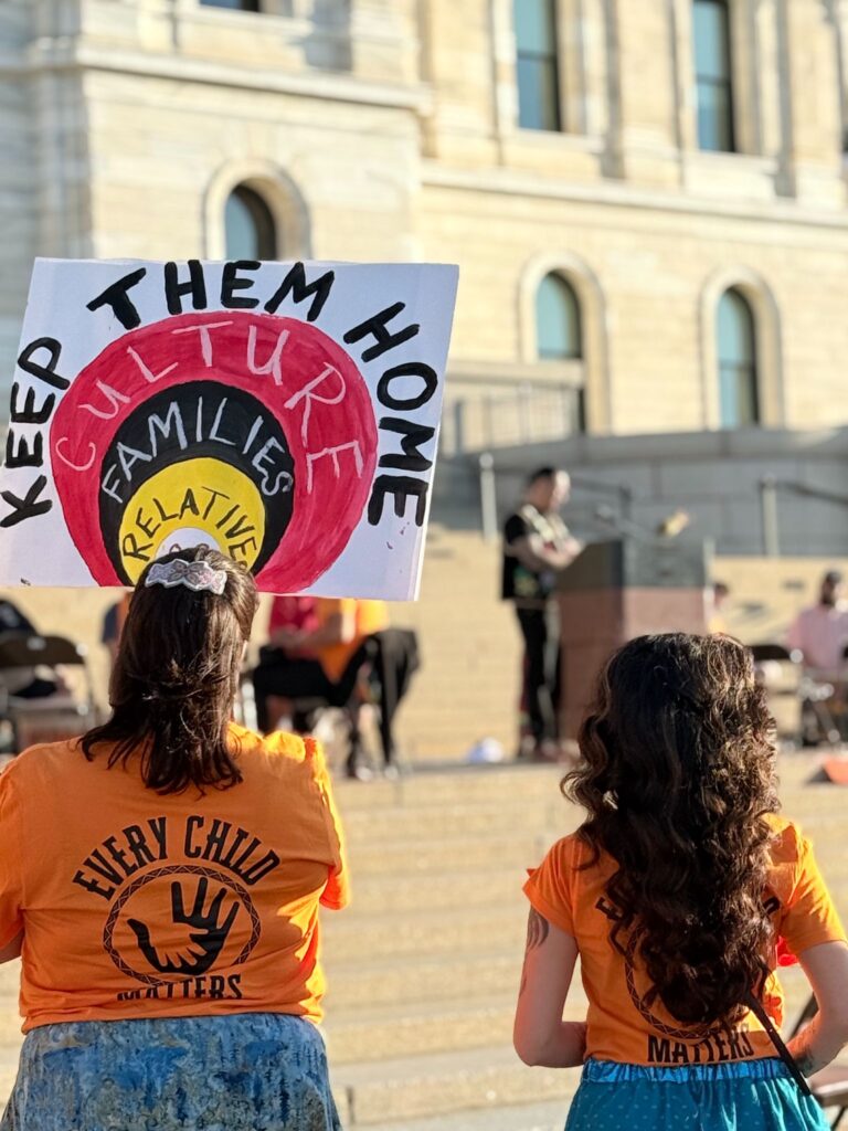 Amid drums, smudging and chants to “bring our children home,” supporters of the Indian Child Welfare Act gathered early this morning outside the Minnesota Capitol building, as the state’s highest court considered the latest legal threat to the bedrock 1978 law.