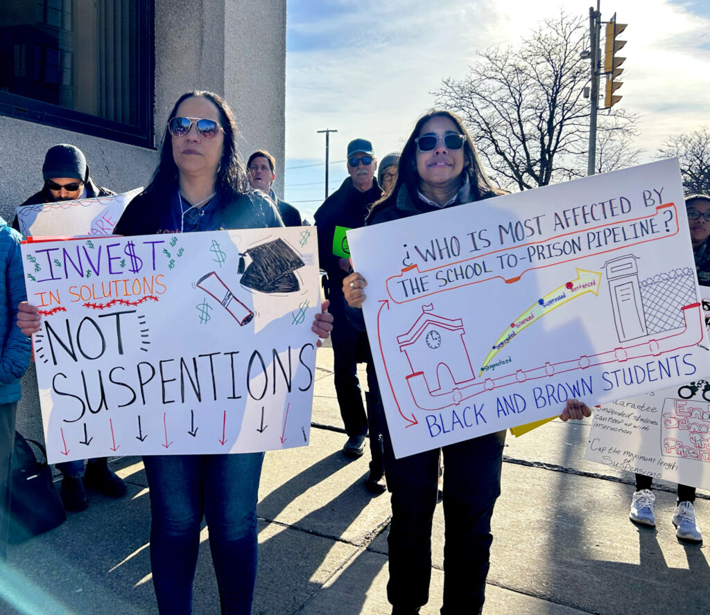 “Suspensions make things worse,” she told the crowd. “They hurt our children’s social and emotional well-being, academic growth and disproportionately impact Black and brown students.”