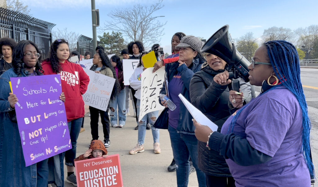 According to the state Office of Children and Family Services, New York education laws require schools to give students who’ve been sent home from school homework and alternative academic instruction such as tutoring. But students, parents and research groups rallying Wednesday said those mandates are loosely enforced, and a more robust state law is needed to ensure the measures are followed for each student.