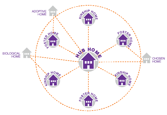 “Kinship or foster families who are not in a hub need to build that network on their own,” Burres said. In non-hub-model homes, “when you take a placement, the system doesn’t come with that child and say, ‘here is a list of five other licensed homes who can support and who you can reach out to.’”