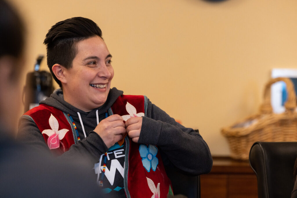 “I’m here today because when I was seven years old, I was put in the foster care system,” said Hocchalter, a member of the Oglala Sioux Tribe. It wasn’t until she turned 14 that she was placed in a Native home where she reconnected with her culture, she added.