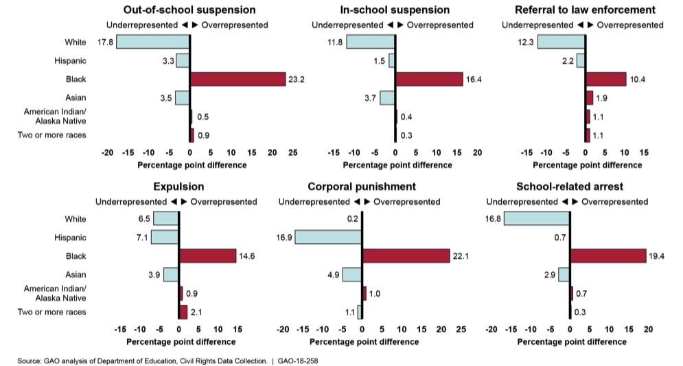 Black students were wildly overrepresented for all six types of punishments analyzed by the GAO
