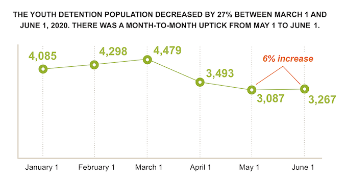 The Annie E. Casey Foundation continues to supply a macro-level look at how the use of juvenile detention has changed during the coronavirus pandemic. Its most recent release of data today shows two trends in May that could portend a more dramatic shift next month.