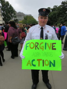 “My sign is ‘Forgive and Take Action.’ It’s not my direct story of what I’m trying to raise awareness for, but at the same time we try to forgive these foster parents for the things that they’ve done to us that weren’t necessarily the best — whether that’s psychological abuse, physical abuse, not caring for us in the right way — and then we take action to better it. That’s what all of us are here for, we’re taking action to better the system. My thing that I really want to get ahold of is these foster parents, these DCF workers, are trained on a college textbook education, but I feel that that’s not right. Textbook educations are great, but they need to be trained in a more realistic setting and in the real world, because that is the best training and that is how they’re going to be able to really work with these kids and really get them on the right track in life.”